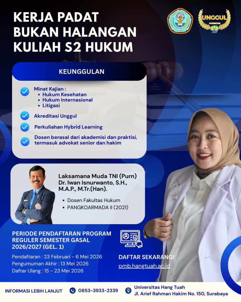 Dinamika dunia hukum menuntut praktisi untuk terus memperbarui pengetahuan dan keahlian. Program S2 Hukum Universitas Hang Tuah hadir sebagai mitra strategis dalam pengembangan karir Anda.